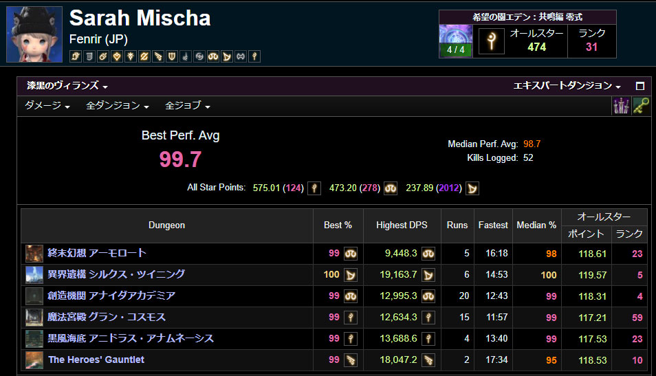 メイン白魔道士のSarah Mischaによる独断と偏見の評価です。