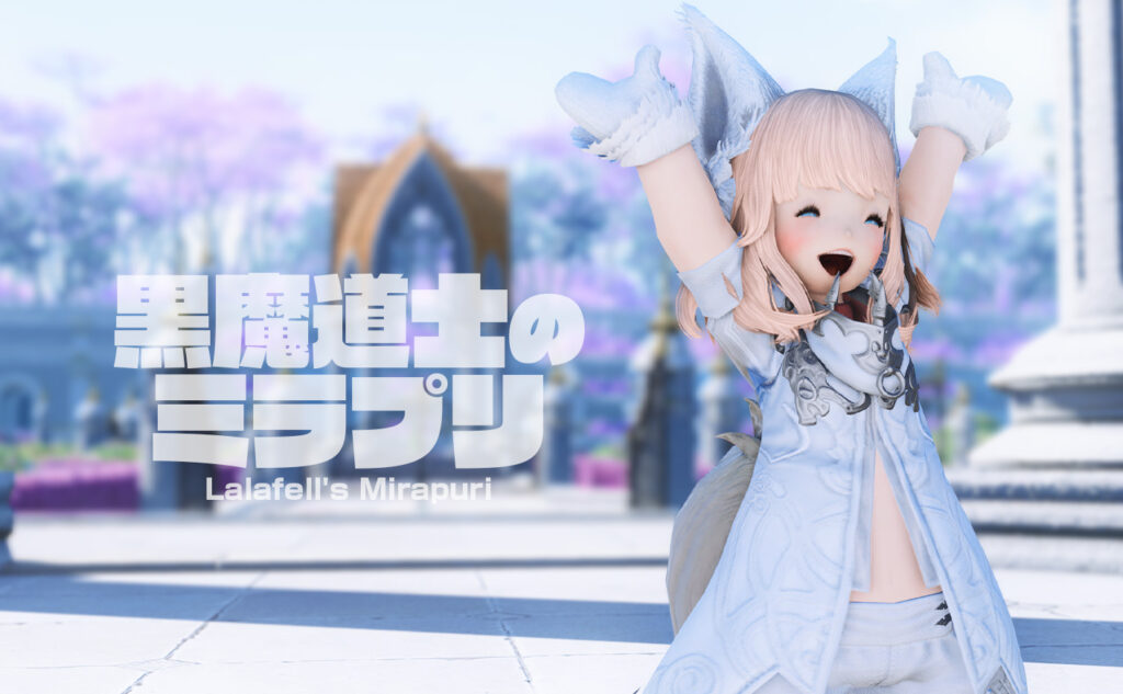 今回はララフェルのかわいいミラプリ黒魔道士ということで、ふわふわのしっぽが可愛い装備やアイディアル・ウィッケコート装備のご紹介です。
