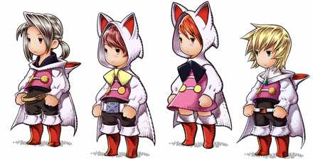 レフィア以外もルーネスやアルクゥ、イングスも白魔道師にジョブチェンジできるがフードを被っているのは女性のレフィアだけ。
