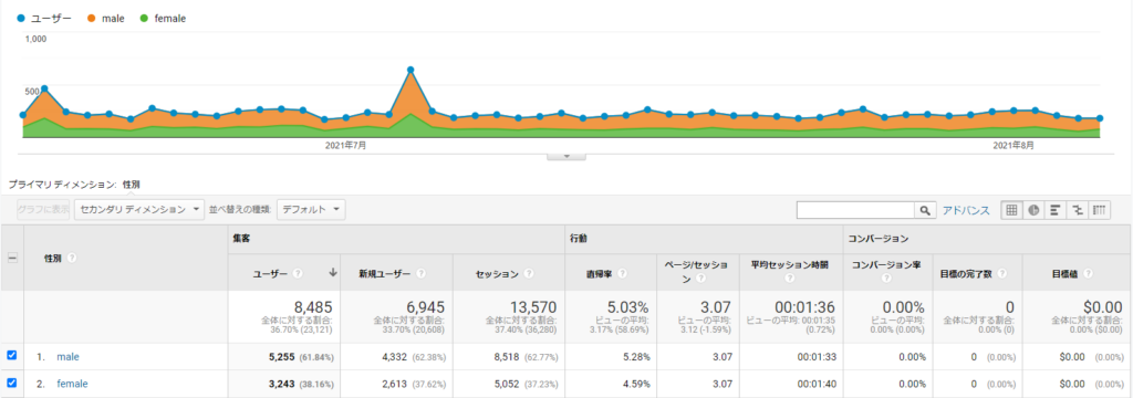 比率でいうと男性6.2:女性3.8という結果に…まぁ想定通りではないでしょうか?