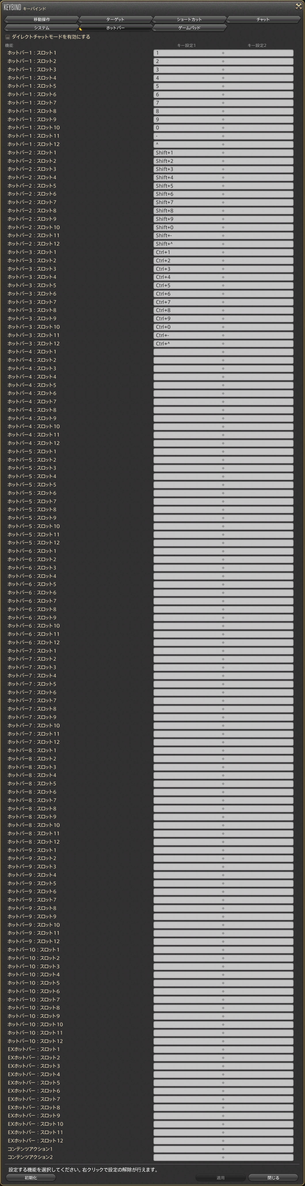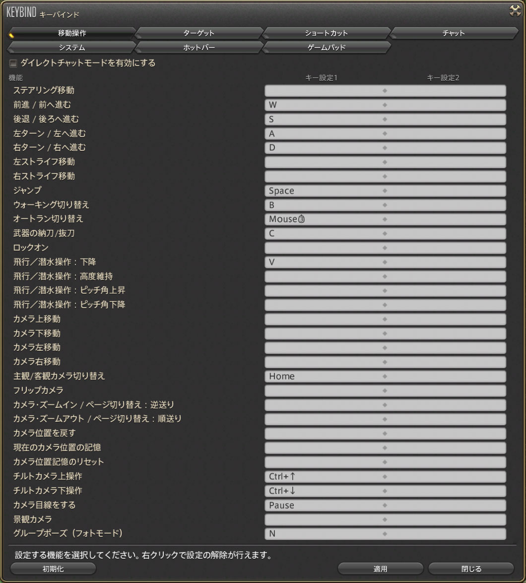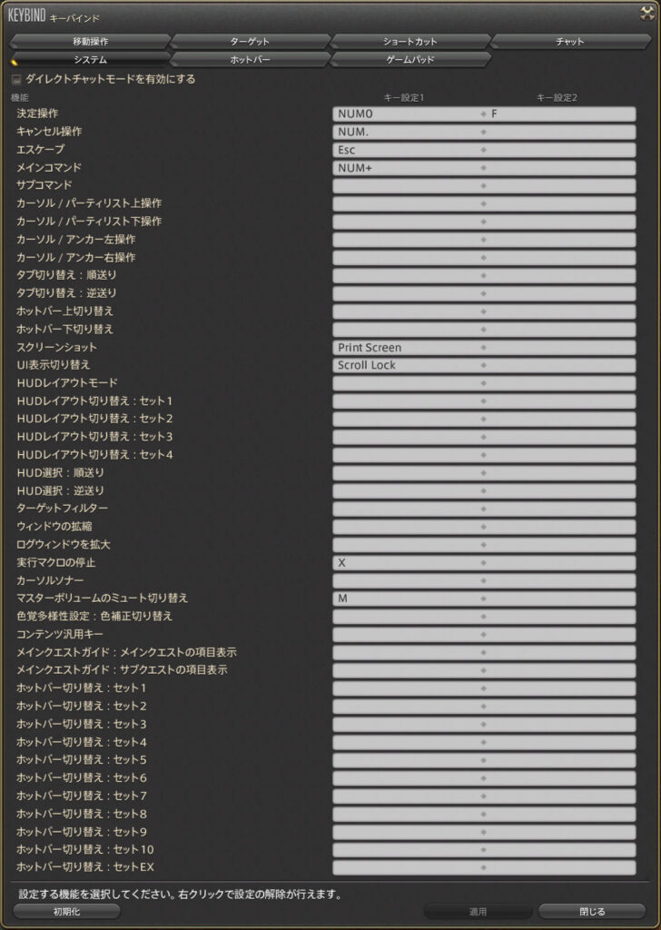 FF14はあまりにも出来ることが多いので本当に必要になったときにキーバインドを設定するようにしています。