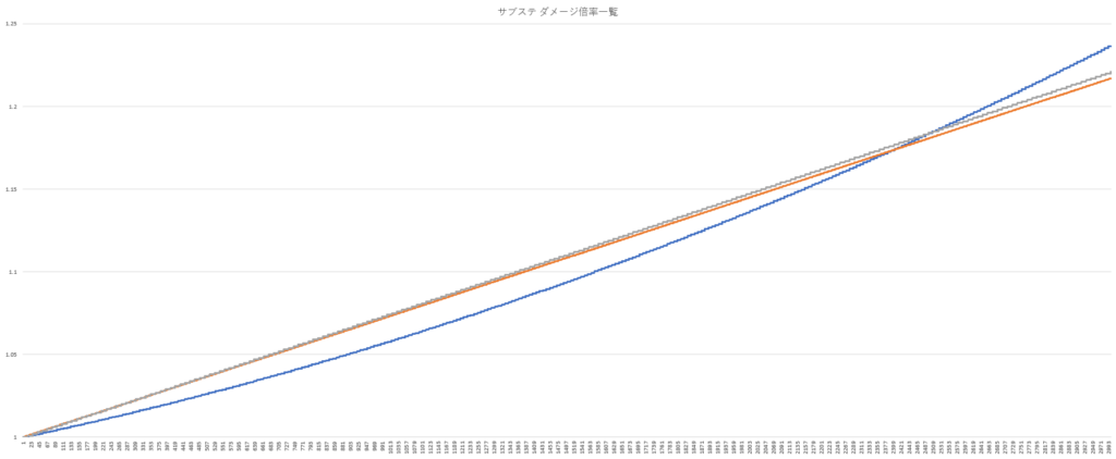 与ダメ上昇は比例のような線で真っ直ぐです。