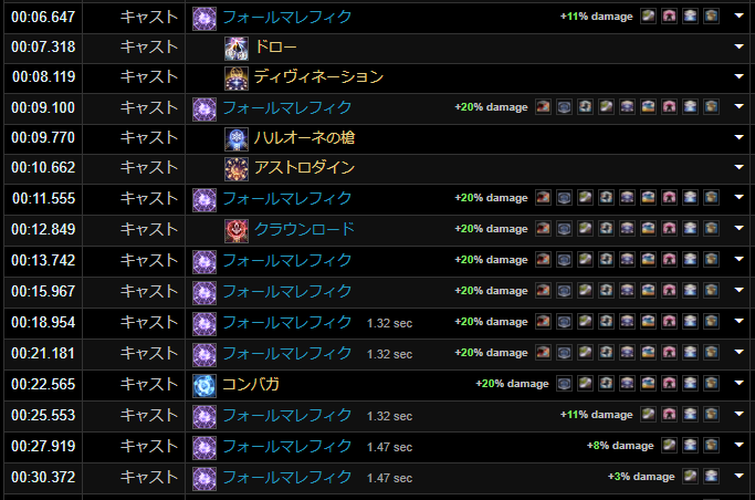割と上位でもやってる人少ないんですが、やってる人と比べて+10~15くらいDPS増加が見込めます。それはDIV効果中にコンバガを更新することです。最初のうちに更新しておくと後々のシナジーにも効果が乗るので他のジョブのrDPSにも貢献できます。