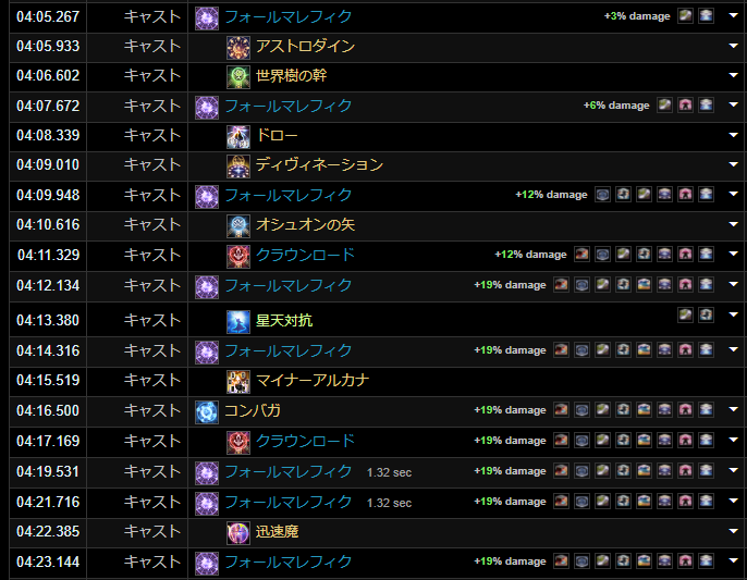 これはアストロダインのGCDスピードのバフがかかったことも考慮されたGCDスピードですので、万が一1種類のシンボルしか揃える事が出来なかった場合、ズレが生じる可能性があるので、必ずシンボルは2種以上は揃えてください。