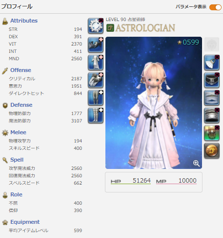 まずは詰めを重視した占星術師の装備の紹介から…