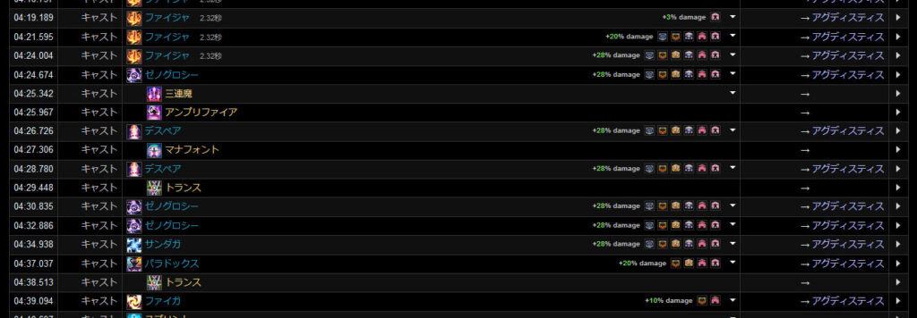 黒魔道士も人によってバーストタイミングが変わってきます。一番いいのは