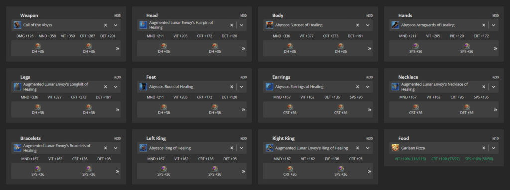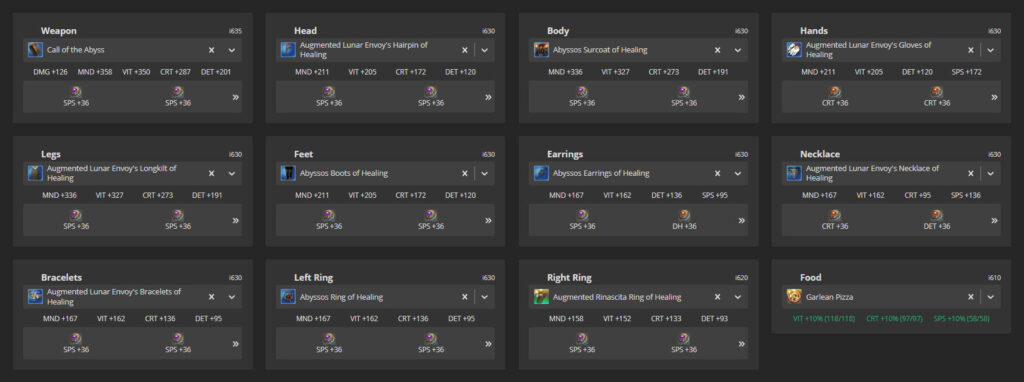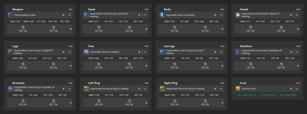 最低信仰でGCDを2.40に調整して上振れを狙う人向けの装備になります。