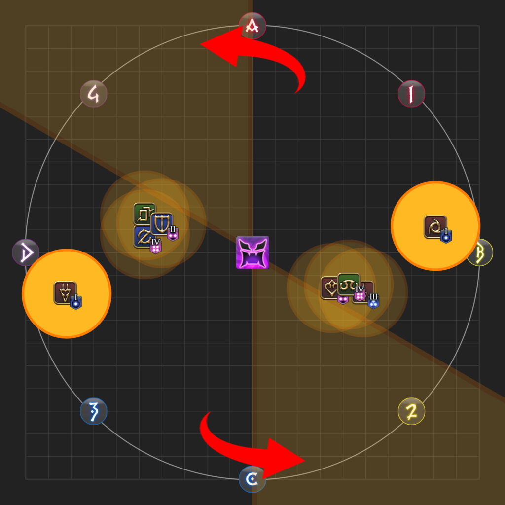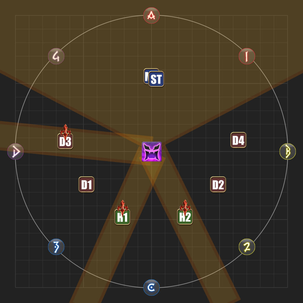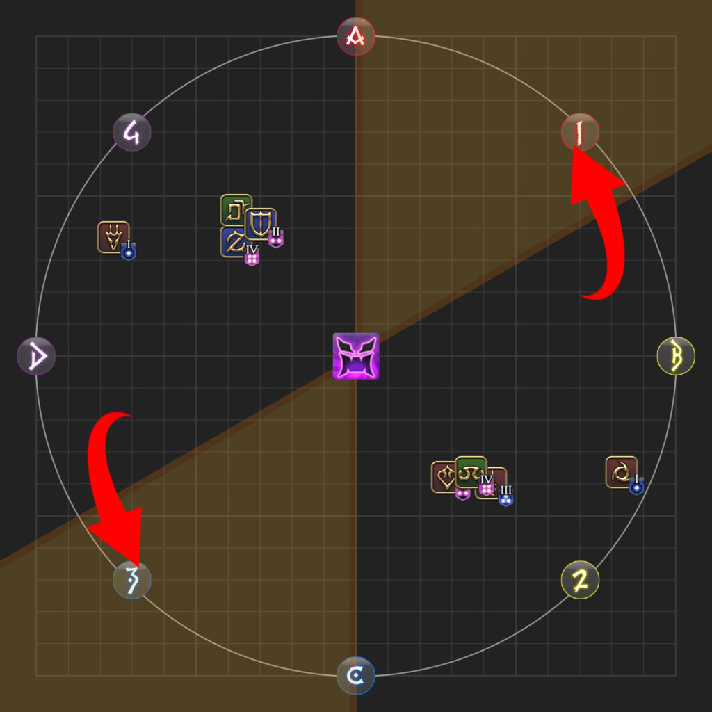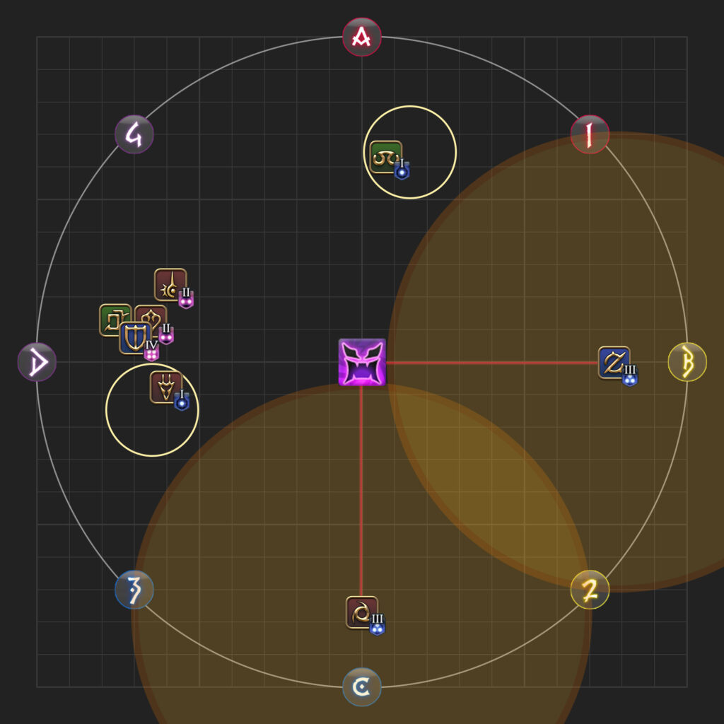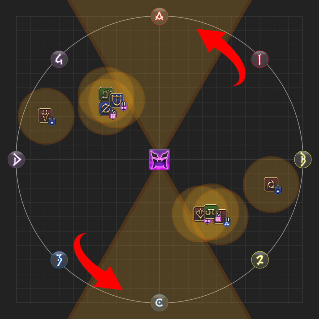 番号被りの優先順位ですが、固定であればアドリブでもいいと思いますが、塔に入る場所や線のAOEを出す場所を決めておいたほうが安定します。