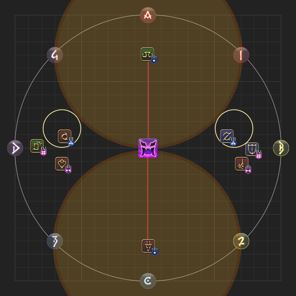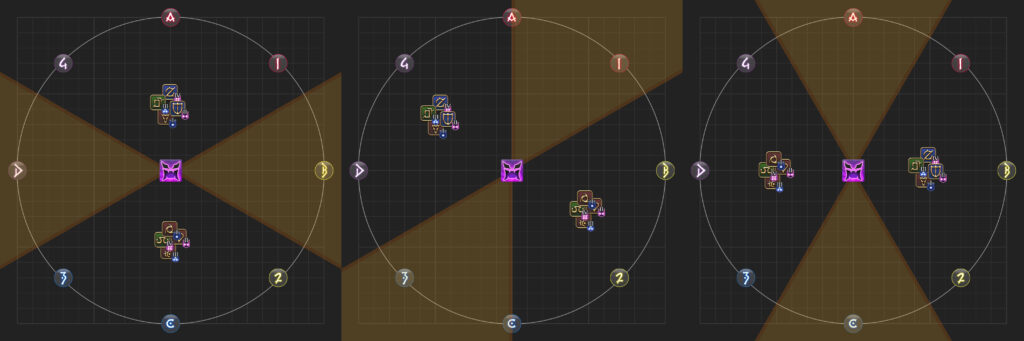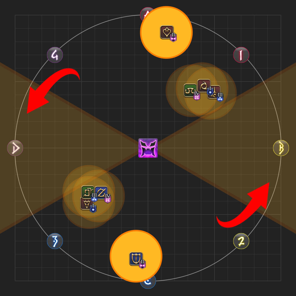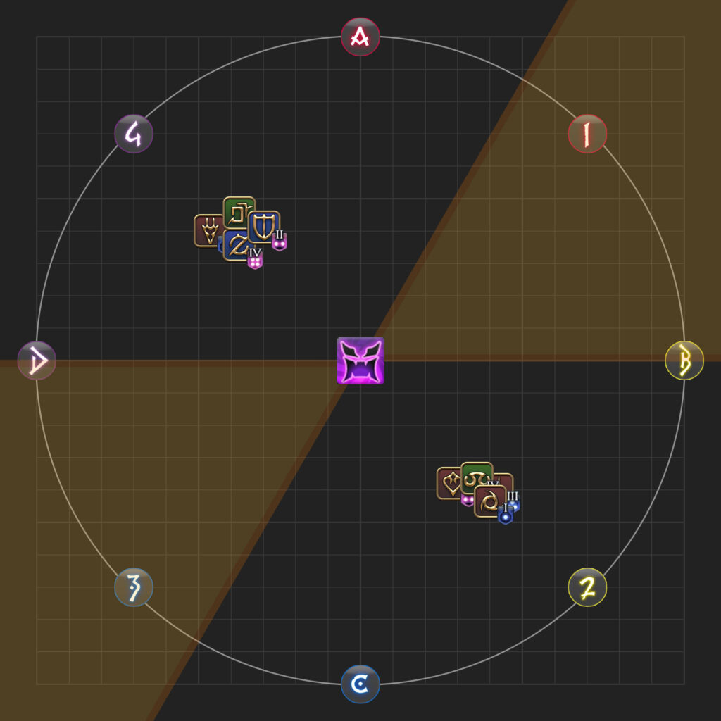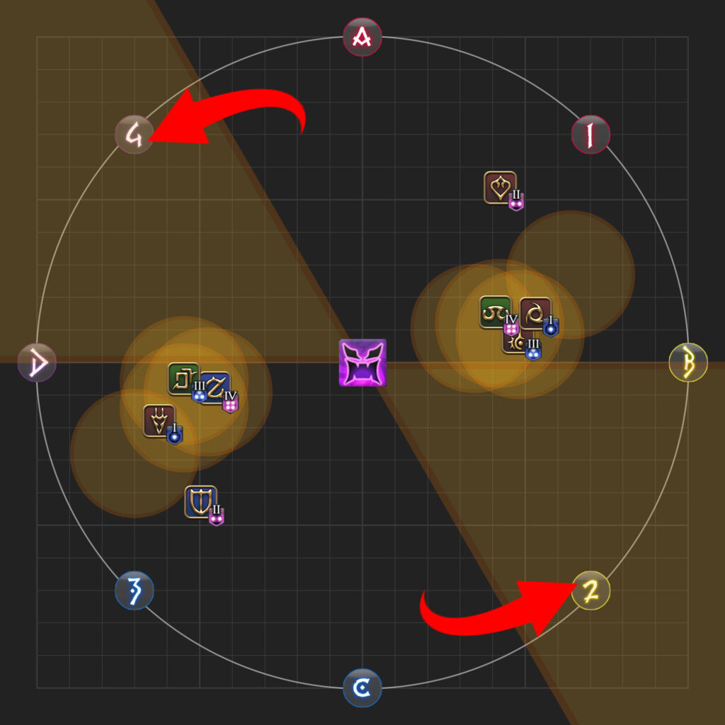 番号被りの優先順位ですが、固定であればアドリブでもいいと思いますが、塔に入る場所や線のAOEを出す場所を決めておいたほうが安定します。