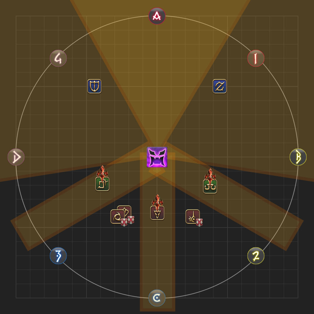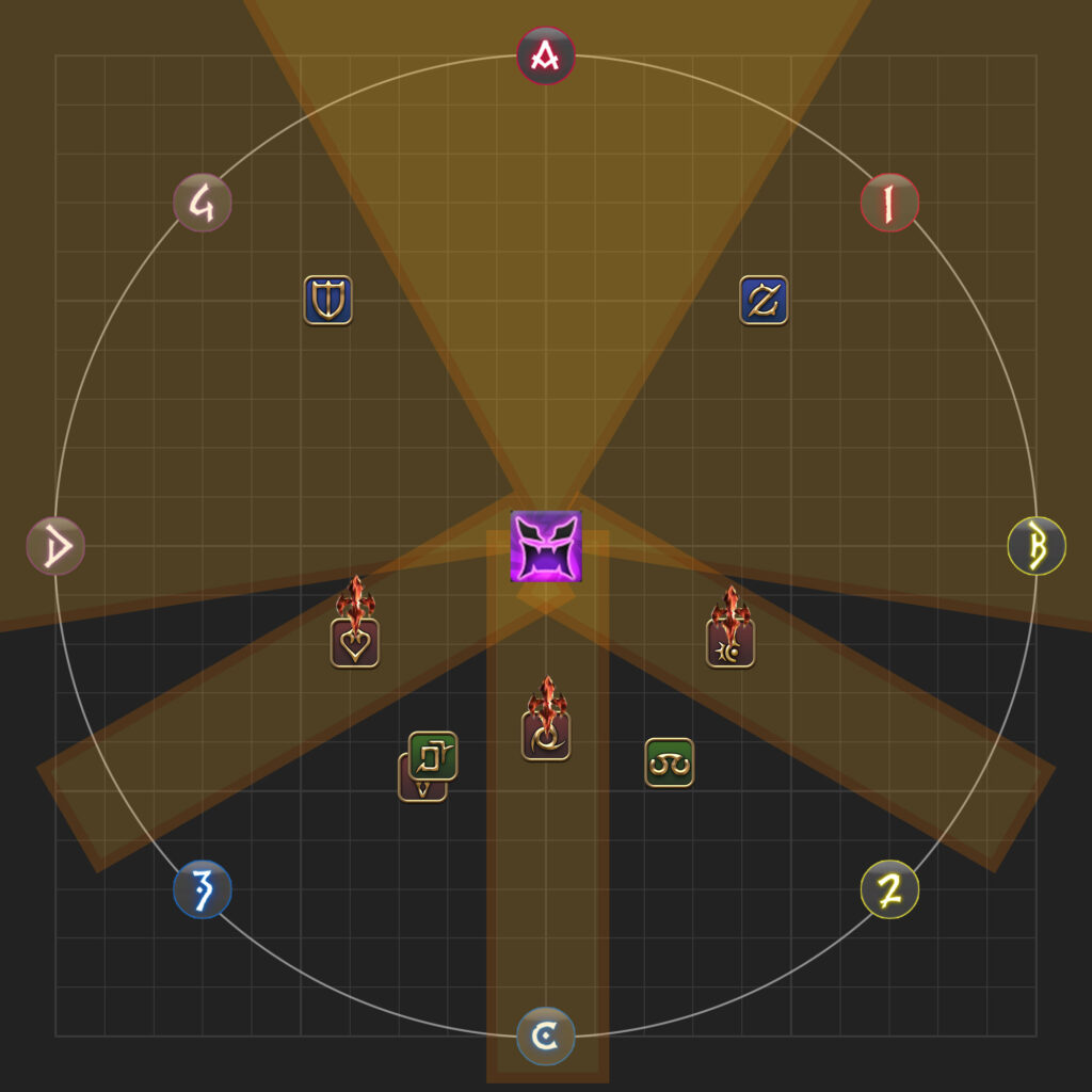 パントクラトルが終わるとボスから一番離れている人に扇範囲強攻撃、タンク以外の6人からランダムで3人にマーカーが付きます。