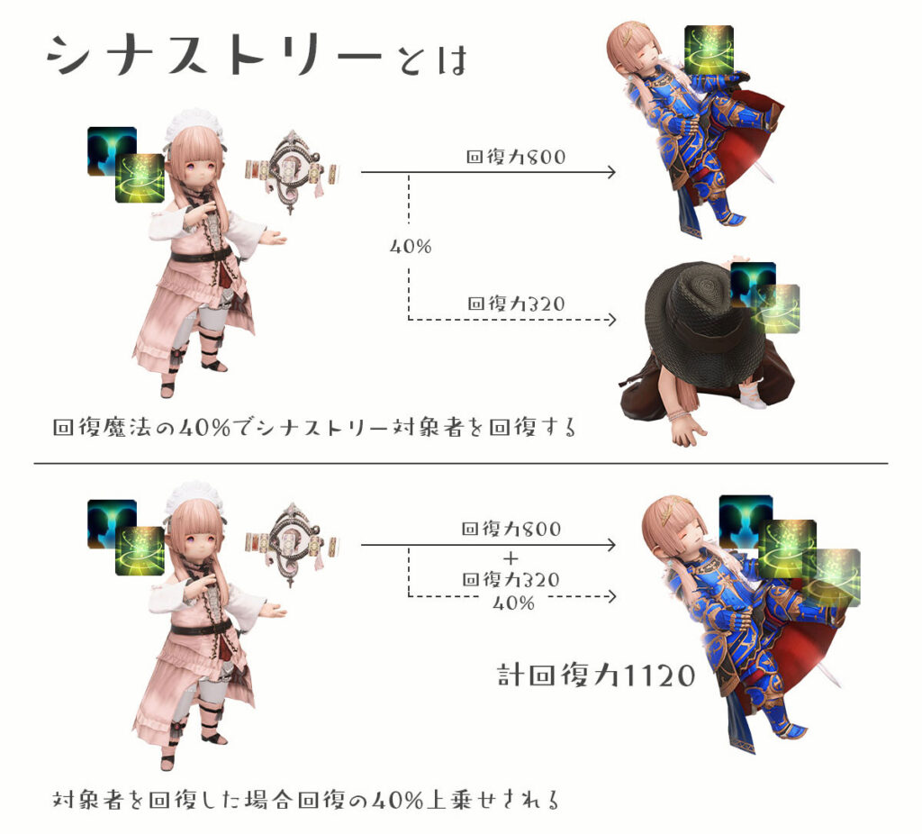 シナストリーは交差もディグもないときに使うアビリティで基本ベネフィラとセットで使います。回復力も分散できたり単体に強力な回復をすることも可能です。